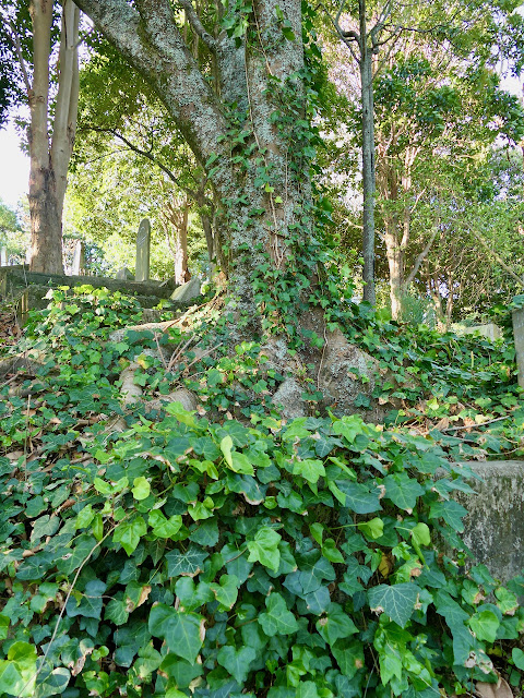 At least if you slid this way you'd have a good chance of hanging on to the ivy ropes. I guess ivy networks must also hold this inhospitable part of the cemetery together.